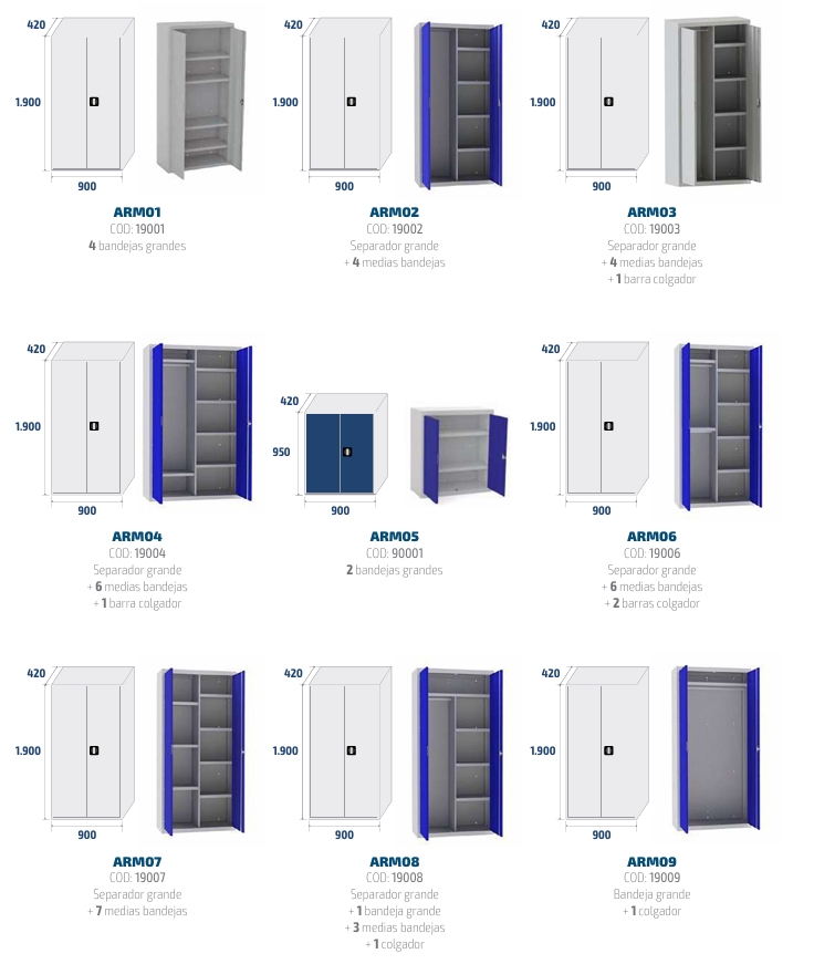 Armario soldado monoblok fabricado en chapa de acero laminado en frío, calidad DC01, según norma europea EN 10130 con un contenido en carbono inferior al 0.12%. Espesor de 0.8 mm.