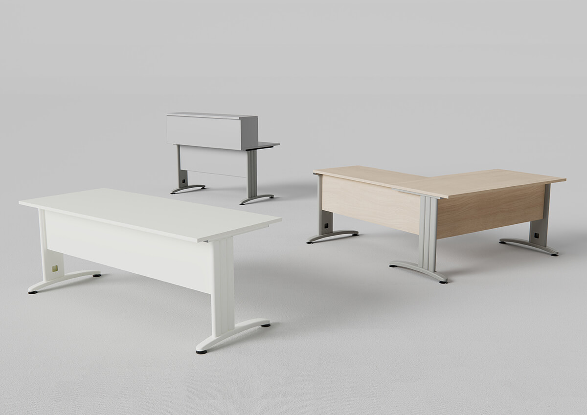 Krono ofrece un diseño diferente al resto de mesas de Kesta, tan sólo dos patas para dotar a estas de una increíble estabilidad. Además la geometría de las patas permite guiar por su interior todos los cables necesarios, para mantener tu oficina en orden.
